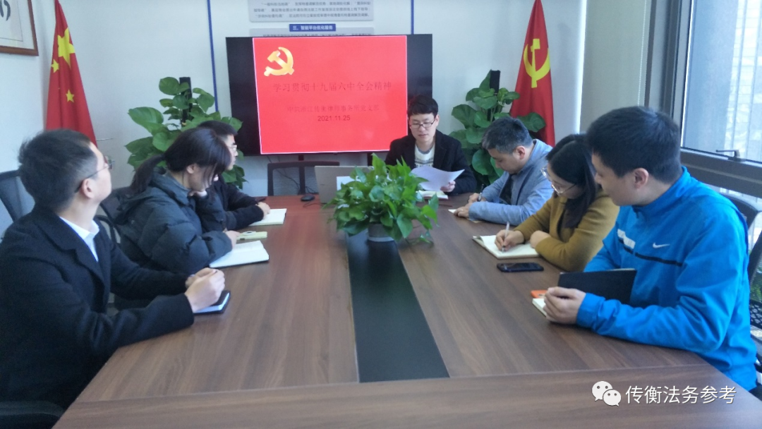 2021年11月25日,中共浙江传衡律师事务所召开党组织专题学习贯彻十九届六中全会精神。
