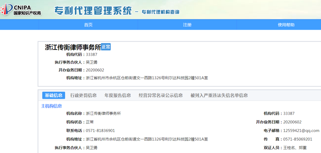 2020年6月2日,浙江传衡律师事务所成功通过国家知识产权局审批,获得“专利代理机构执业许可证”(机构代码33387)。