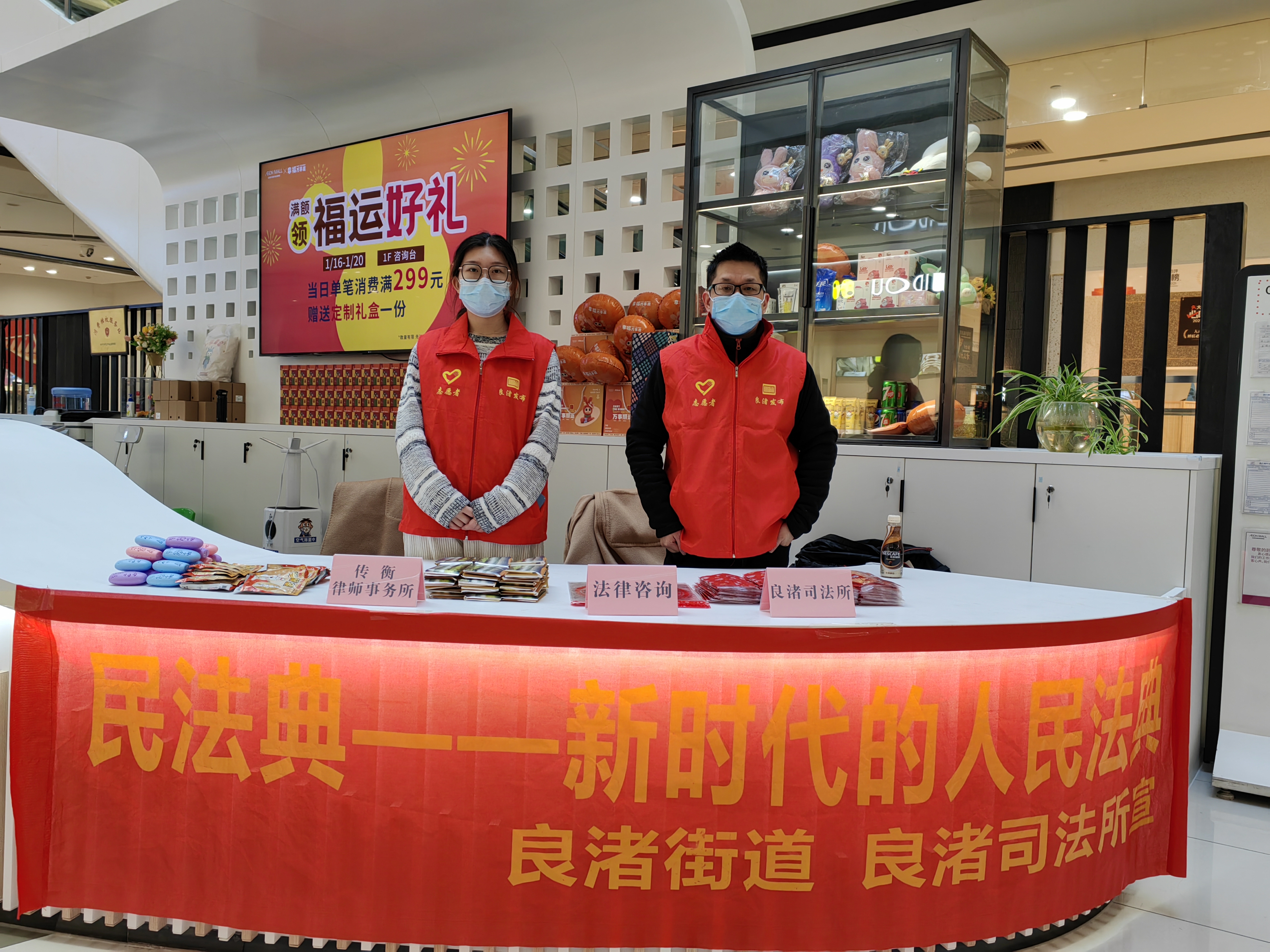 天虽寒,人心暖。为丰富群众法治文化生活,增强公民法治观念,营造平安、喜庆的节日气氛,1月18日在新春佳节即将到来之际,良渚司法所联合浙江传衡律师事务所到永旺梦乐城开展线下普法宣传活动。