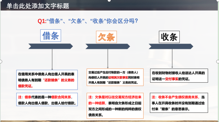 讲座涵盖了婚姻家庭、继承、民间借贷等与民众生活很贴近的纠纷类型与相关案例,重点提及了无效婚姻、可撤销婚姻、近亲的范畴以及借条欠条收条的区别,还有借条的规范书写等知识点。
