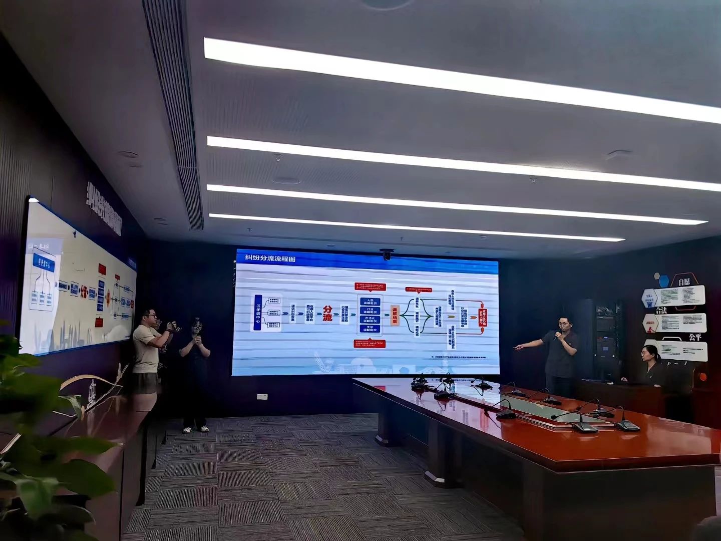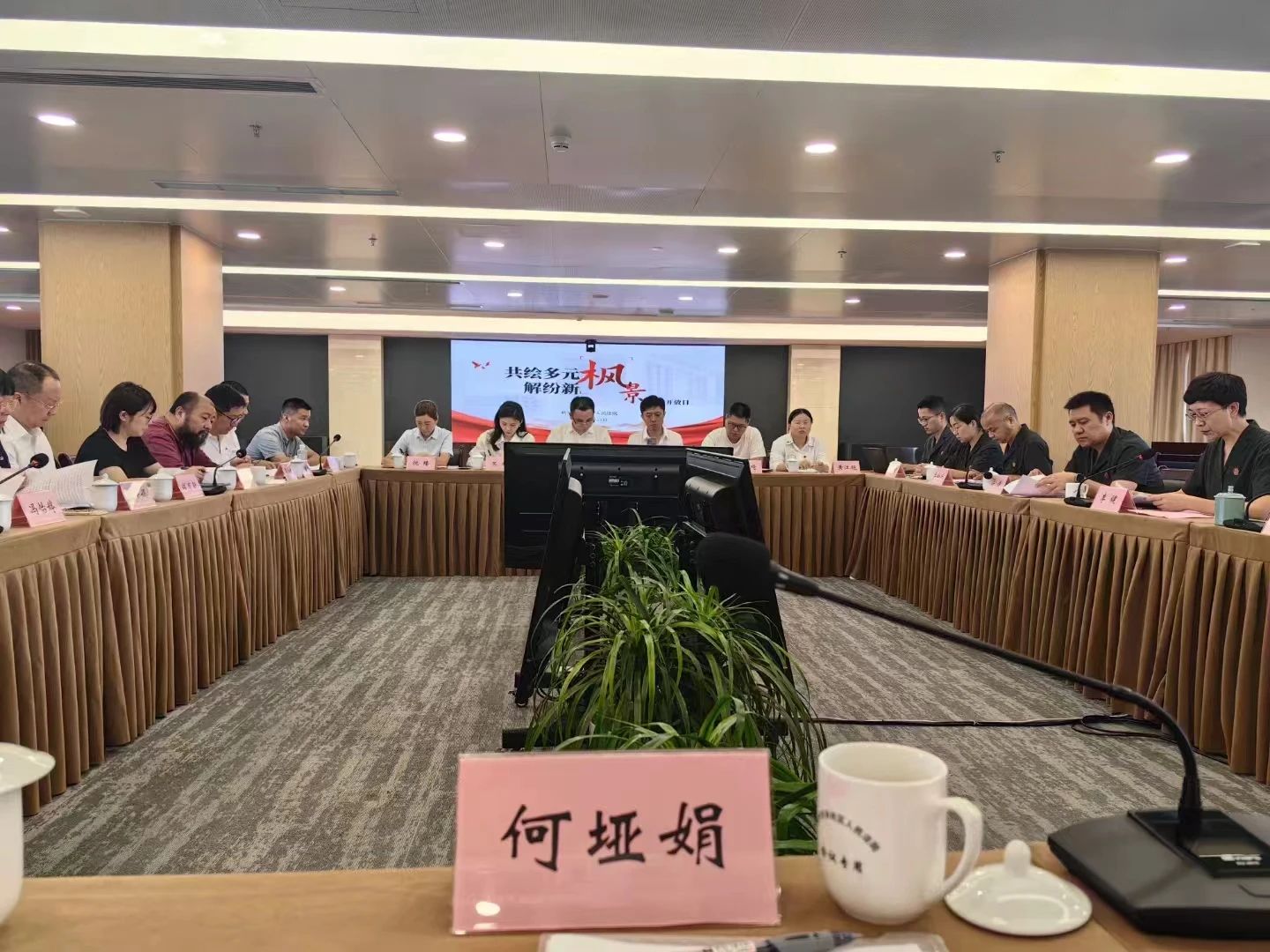 会上,何主任分享了壹企惠普法公益服务中心的商事纠纷“五步调解法”,并向市中院、区法院领导汇报了中心的调解成绩。