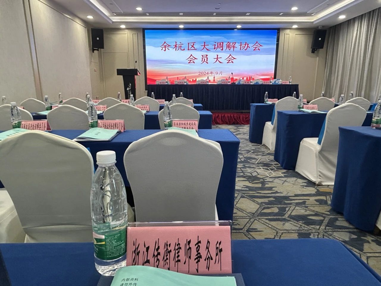 9月4日(周三)下午,为了构建信息联通、资源共享、互利、互赢的平台,推动完善余杭大调解格局,余杭区大调解协会组织召开会员大会。传衡所作为会员单位受邀参加。