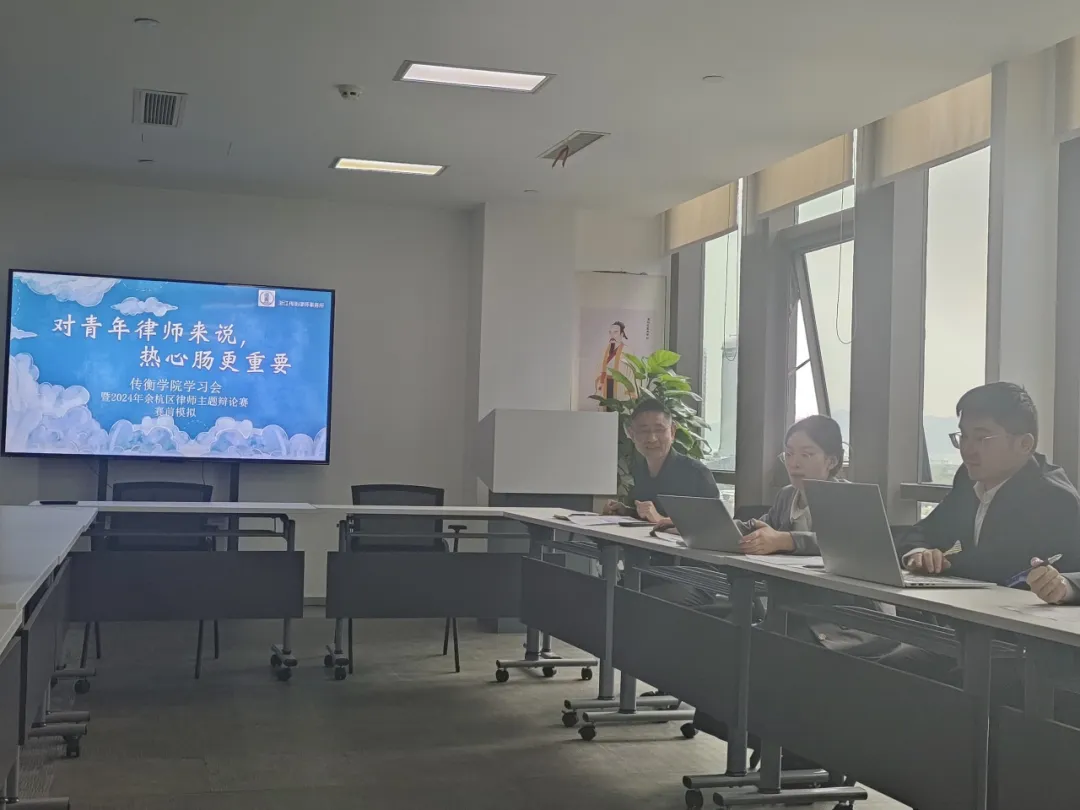 2024年10月25日中午,传衡学院成功举办了第二十三期学习会。本次会议系2024年余杭区律师辩论赛赛前模拟,主题为“对青年律师来说,热心肠更重要”,由许思华、周利杰、宁成林、袁丙庆担任辩手,与大家交流分享。