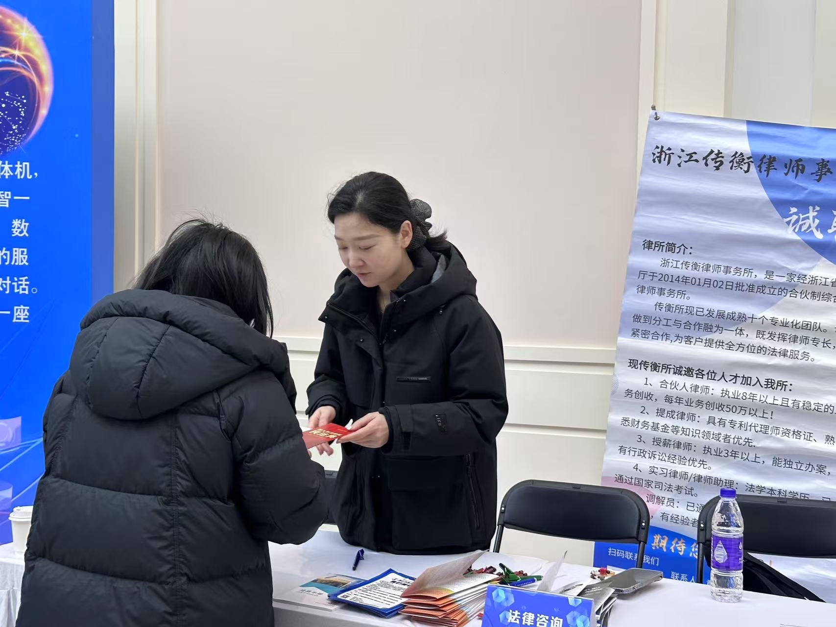 3月5日上午,传衡律师事务所在未来科技城国际会议中心设立法律咨询点,专门为求职者提供免费的法律咨询服务。