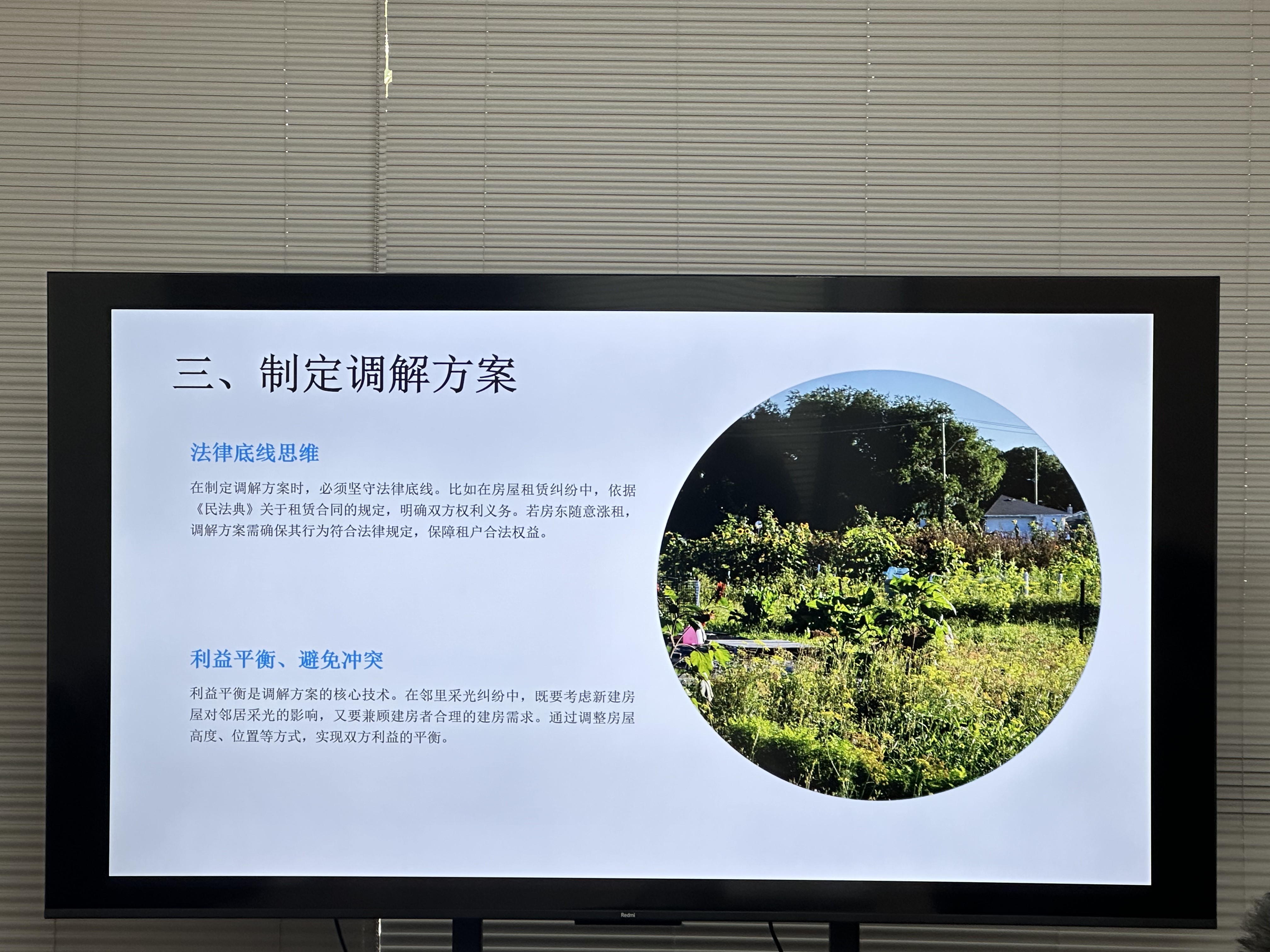 作为"法律进网格"系列活动的重要环节,本次讲座创新采用"案例库+调解技巧"双教学模式。目前,荆山社区红色网格驿站已建立常态化法律服务机制,未来传衡所将会继续携手荆山社区红色网格驿站,让法治力量真正融入基层治理。