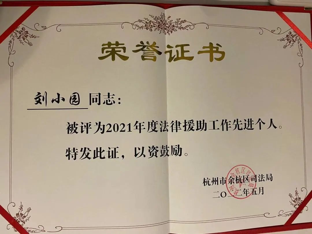 传衡所刘小园律师荣获“2021年度法律援助工作先进个人”称号。刘律师系我所资深律师,她热爱法律援助工作,能够依法履行职责,公平、公正地为群众办案,切实解决群众的法律问题。