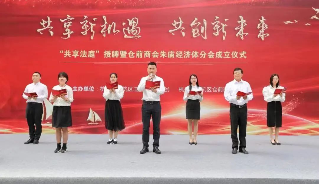 5月19日上午,仓前街道举办“共享法庭”授牌暨仓前商会朱庙经济体分会成立仪式。传衡所作为仓前商会朱庙经济体分会副会长单位,何垭娟主任参加本次仪式。