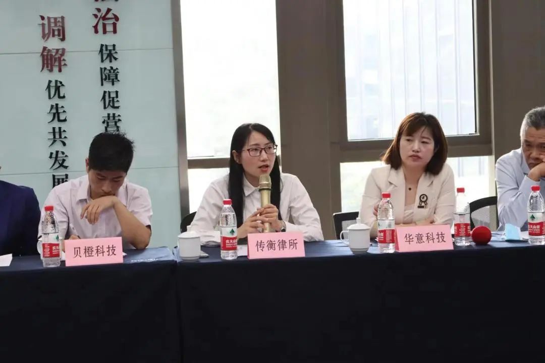何主任作为传衡所代表发言,截止目前,传衡所公司法务部已累计服务企业数百家,对企业有着深刻的理解和认识。何主任作为园区企业代表,还就企业目前最关心的几个问题进行了提问。