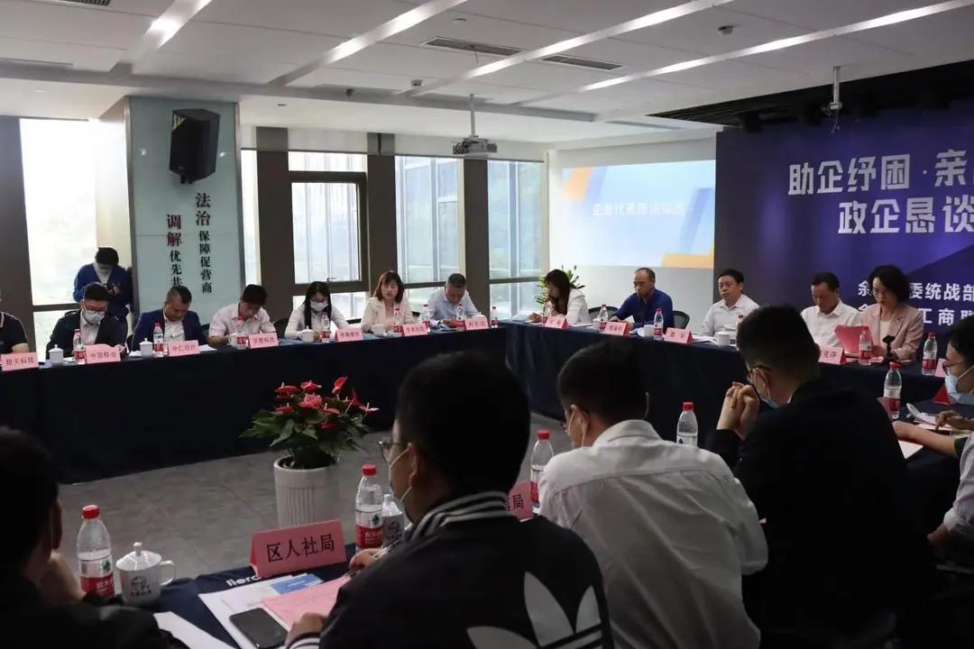 授牌仪式后,杭州市工商联党组成员、副主席周华,区委常委、统战部部长袁水良,余杭区“亲清服务团”成员单位分管领导及各企业代表开展“助企纾困●亲清直达”座谈会。