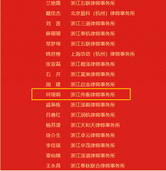 近日,杭州市总工会、杭州市司法局和杭州市律师协会联合发文公布《关于通报表扬2021年度杭州市工会法律服务优秀志愿者的决定》,传衡律师事务所何垭娟主任获得“2021年度杭州市工会法律服务优秀志愿者"荣誉称号。