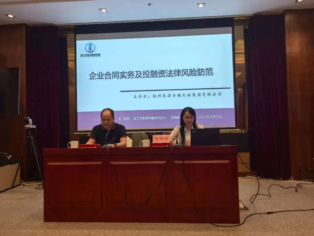传衡所主任何垭娟受邀到杭州良渚古城文旅集团有限公司开展法律风险防范普法讲座