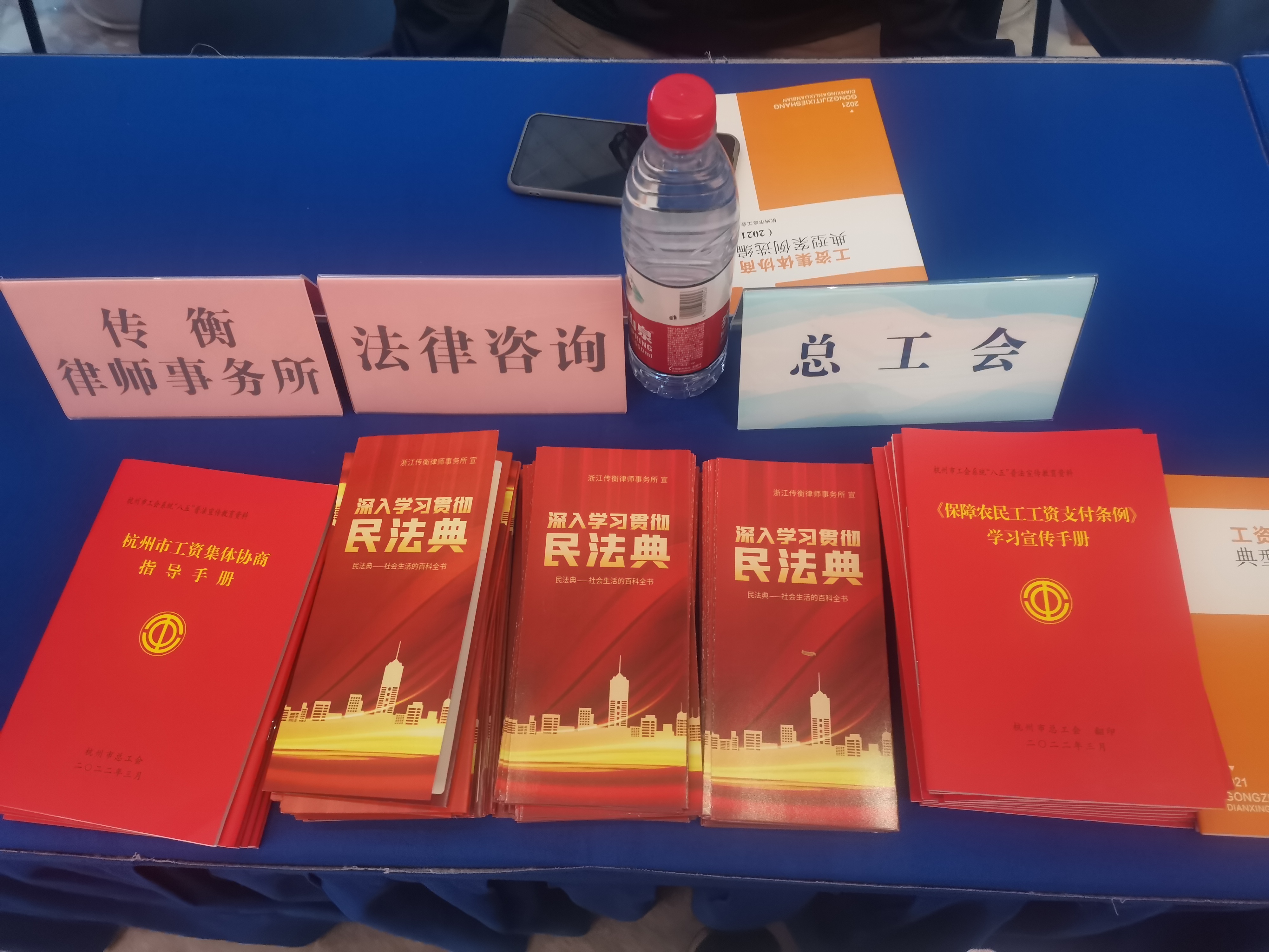 受余杭总工会的邀请,来自传衡所的普法志愿者们为现场企业以及众多求职者进行了普法宣传和法律咨询,发放了《民法典》和劳动相关的普法宣传册近百余份,并解答了法律问题若干。