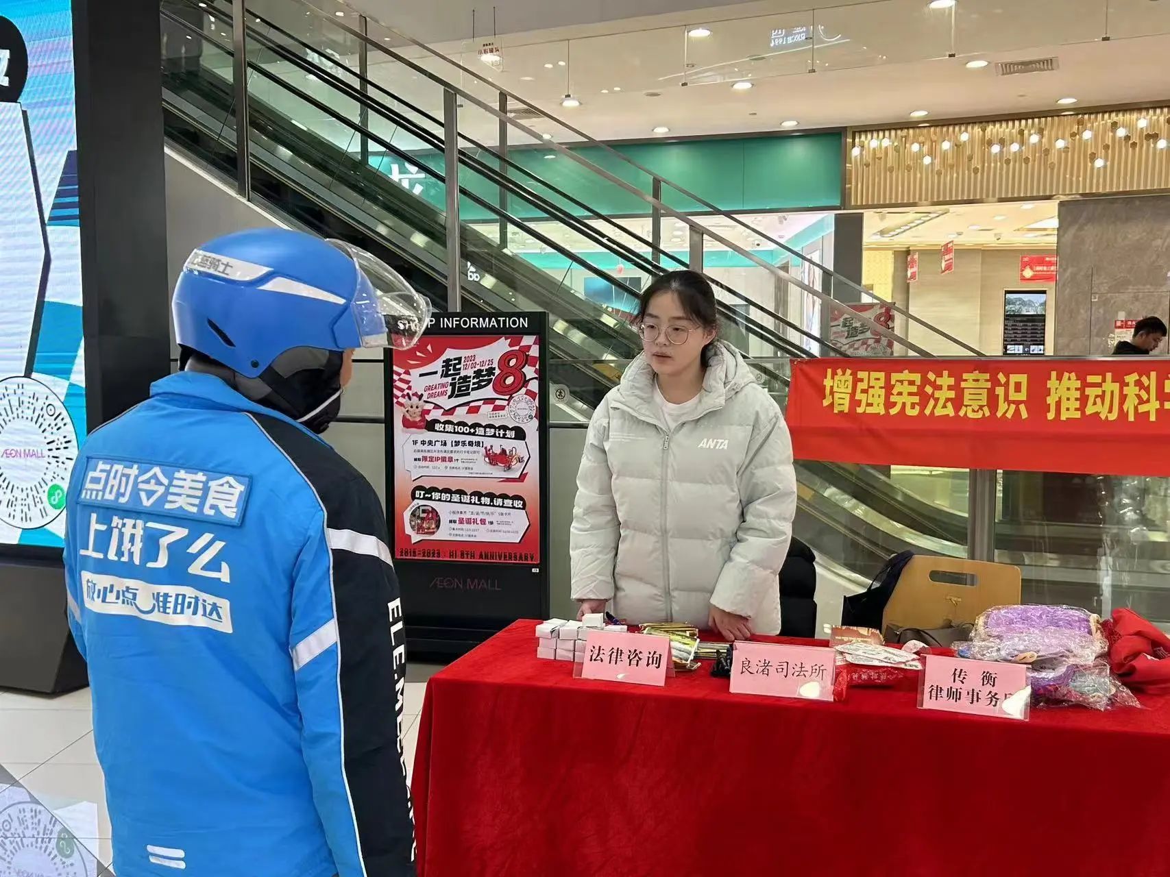 为了响应2023年全国“宪法宣传周”活动,良渚司法所携手传衡律师事务所启动了普法宣传项目。2023年11月30日下午,传衡律师事务所的普法志愿者们在良渚街道永旺梦乐城开展了一场深入人心的宪法宣传活动。