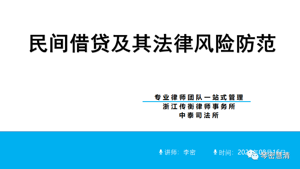 传衡所优秀律师李密应中泰司法所邀请,于2022年08月16日为专职网格员进行民间借贷普法培训。培训主要从“民间借贷简介”、“民间借贷利息”、“以案释法”及“降低民间借贷风险秘籍”等几个方面对民间借贷的常用法律知识进行逐一分享。